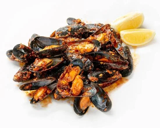 Whole shell large mussels. Choose your favorite sauce and add-ons.